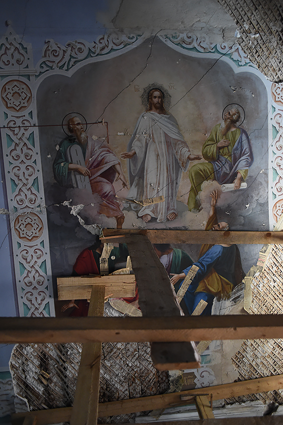 In the last century the roof was not put on properly, and the snow load caused a protrusion which, in its turn, caused leaking. As a result the frescoes began to flake off, though they can still be saved with the use of modern technologies: they can be carefully taken off and then placed back on the well-prepared and reinforced walls and ceiling.