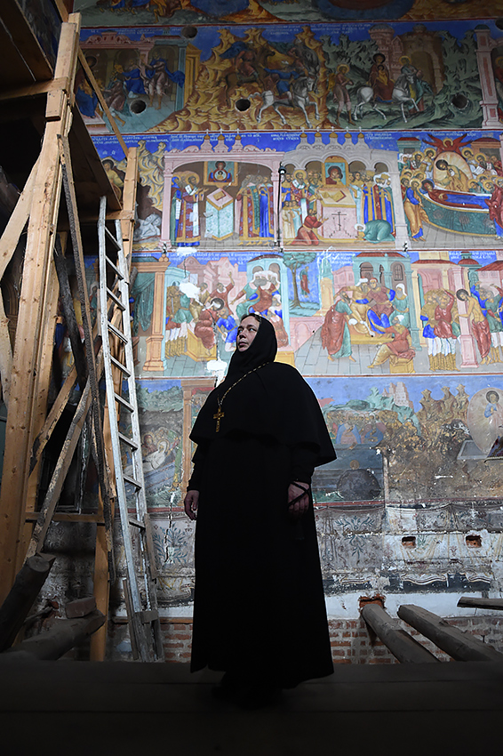 “In 2011, the lower tier of frescoes was dark, and now silhouettes, the events of the Biblical history can be distinguished. Now the inscription, reading ‘Christ before the People’ is discernible—earlier it was illegible,” Mother Athanasia casts a glance at the walls. “We have an impression that the frescoes are renewing themselves: they are becoming clearer, brighter and their colors more saturated. It is not only our observation; people come here after some period of absence and notice that the changes are obvious.”