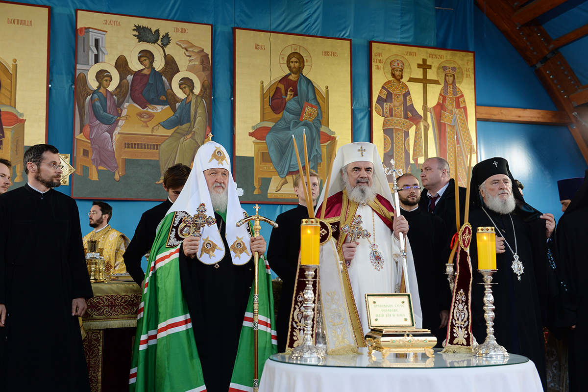 His Holiness Patriarch Kirill of Moscow and All Russia and His Beatitude Patriarch Daniel of Romania headed the transferal of the reliquary containing a portion of the relics of St. Seraphim of Sarov to the spiritual center of the Romanian Patriarchate yesterday, reports patriarchia.ru.