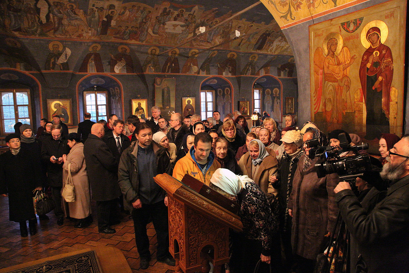 The icon was brought to the monastery on Friday before the start of the evening services by Yuri Serov, the chairman of the board of the Fraternity of Orthodox Leaders of Culture, Science and Education, which had initiated the sending of the image of St. Luke to the space station.