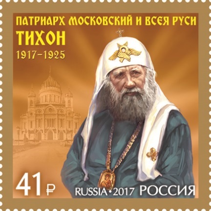 The Russian Federal Communications Agency and the JSC “Stamp” announced yesterday the issuing of a new stamp dedicated to the centenary of the restoration of the patriarchate to the Russian Orthodox Church. The stamp depicts St. Tikhon of Moscow, who was elected and enthroned as the first hierarch of the restored patriarchate, against the backdrop of Moscow’s Christ the Savior Cathedral.