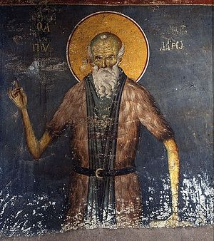 From your youth, O wise one, you bravely desired that which passes understanding / and you forsook the tumult of the world. / Because of your divine way of life you became a dwelling of the Trinity / and enlighten those who turn to you with faith! / Therefore we cry out to you: “Rejoice, most wealthy Paul!”