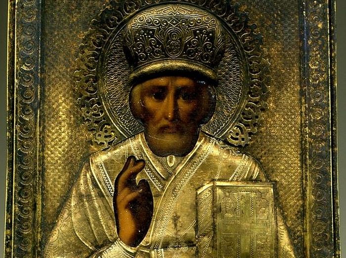 Sasha took his dad to his grandmother’s room. There he clambered up onto the stool and pointed his finger at the ancient icon of St. Nicholas in the modest prayer corner: