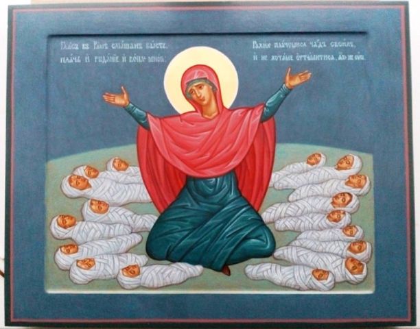 Iconographer Dimitry Yudov from Petrozavodsk has painted an icon of Rachel Weeping for Her Children especially for the events, based on frescoes in the ancient Markov Monastery in Macedonia, according to activists of the public pro-life movement “Warriors for Life” which is one of the organizers of the event.