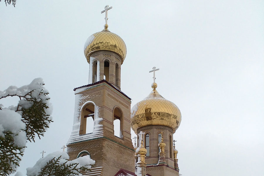 The church, in the shape of a ship, is adorned with seven gold domes. The carved oak iconostasis was made by master carpenters from the neighboring city of Konstantinovka. The icons were painted by masters from Kiev.