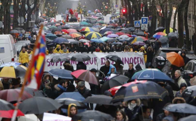 In addition to pro-life issues, this year’s march also focused on end-of-life issues. While active assisted suicide is illegal in France, the law allows for a loophole that leads to the same result. A bill passed in January 2016 allows for “heavy and continuous sedation” to be administered until the patient dies from illness or starvation.
