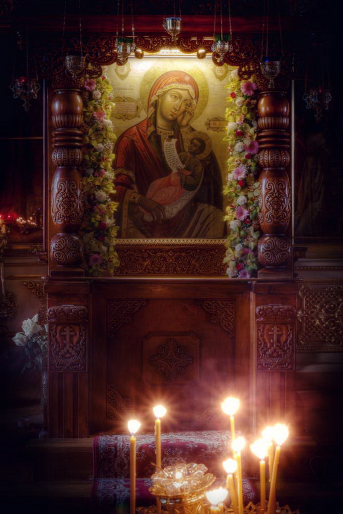 The tears were flowing… I wept, went home, and I felt a little better. Then I noticed that I didn’t have any pulling pain in my lower abdomen. I went to “Assuage My Sorrows” again. I asked for some oil from the lampada before the icon and started adding a drop of it to my food.