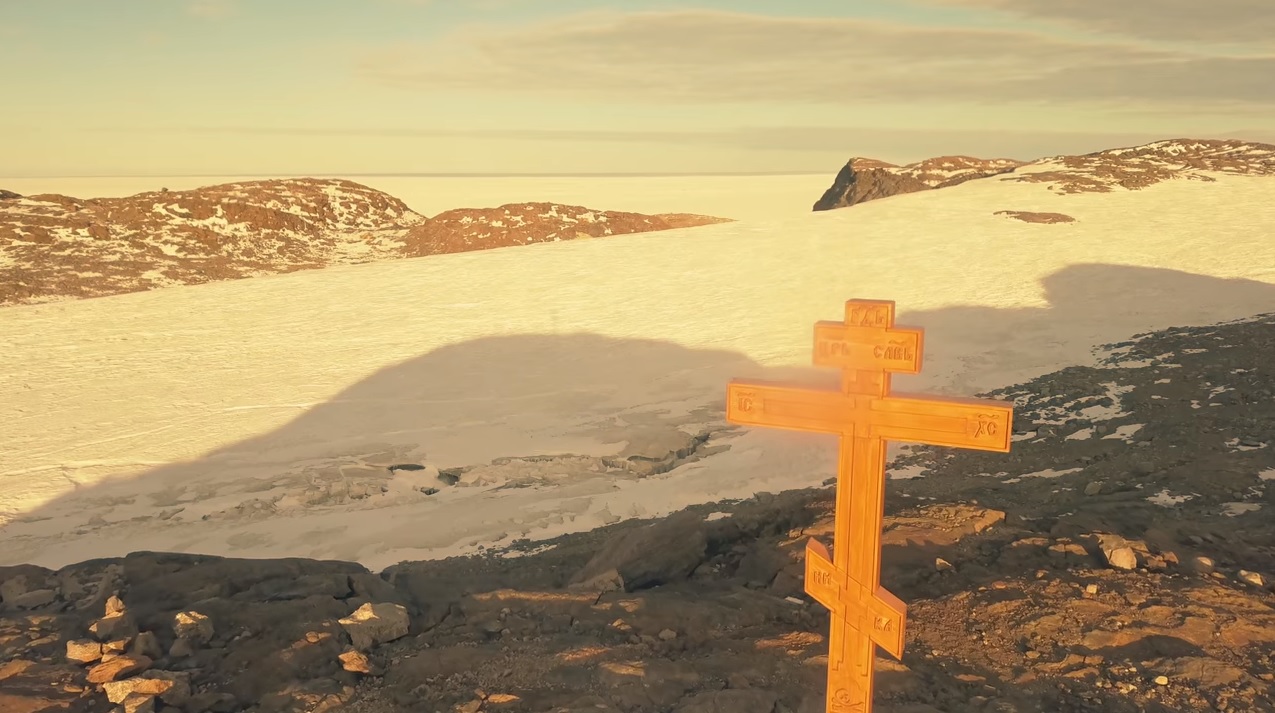 The Church of the Holy Trinity, a podvoriye of the Holy Trinity-St. Sergius Lavra, has stood on the western side of the continent for 10 years already, but this was the first time the Divine Liturgy was celebrated on the eastern side, the video notes. The members of the local polar expedition hope to see an Orthodox church on that spot one day.