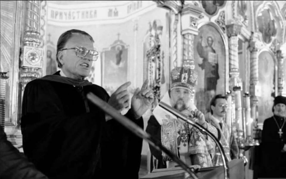 The Rev. Graham regularly visited the Soviet Union from 1982 to 1992, and often preached in former USSR nations after its fall, as well as in other Orthodox countries, often forging friendly relationships with the local hierarchy. He was known for not undermining, but supporting local Church traditions wherever he went, which sometimes drew criticism from other Evangelicals.
