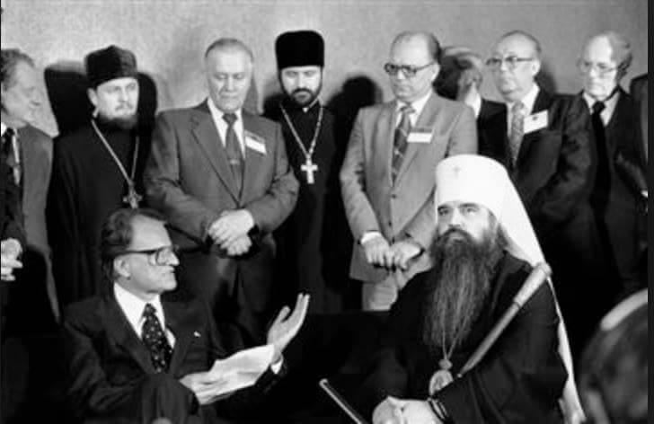 He first visited the USSR at the personal invitation of Patriarch Pimen and spoke at Theophany Cathedral and the Central Baptist Church as part of the international conference “Religious Leaders for Saving the Sacred Gift of Life from Nuclear Catastrophe,” reports Pravmir.