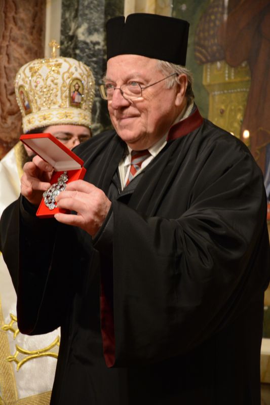 At the end of the Divine Liturgy on the occasion of the 75th birthday and his long ministry in the Church, Professor Dimitar Dimitrov, conductor of the patriarchal St. Alexander Nevsky choir for 40 years already, was awarded the title “Protopsaltis of the Bulgarian Orthodox Church.” Met. Cyprian of Stara Zagora also awarded him the Order of the Holy Apostle Carpus for his decades of faithful service.