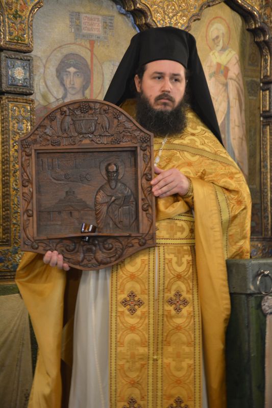 Following yesterday’s service, Archim. Philip thanked Met. Seraphim for celebrating the glorious Presanctified Liturgy and recalled the work of St. Seraphim of Sofia, who for many years served at the same altar where the Divine service was celebrated in his honor. He then gave an icon of St. Clement of Ohrid to Met. Seraphim, painted more than a century ago in Ohrid.