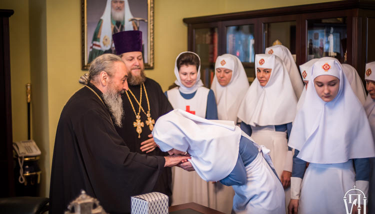 His Beatitude Metropolitan Onuphry of Kiev and All Ukraine received at his residence on the territory of the Kiev Caves Lara the sisters of the Martha-Maria Monastery which is being created in Kiev who will carry out the obedience of caring for the sick and infirm, reports the site of the Ukrainian Orthodox Church.