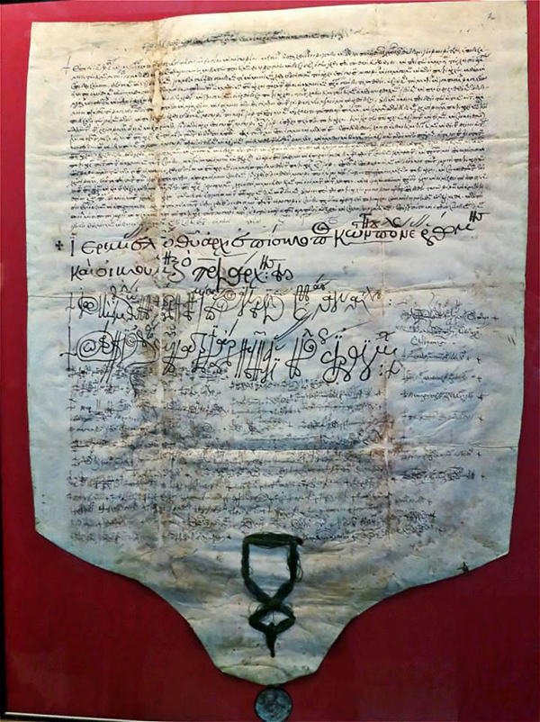 A photograph of the May 8, 1590 tomos of the Council of Constantinople on the foundation of the Russian Orthodox Church as a patriarchate has been published online by the channel “Athonite Herald” on Telegram, a cloud-based instant messaging service.