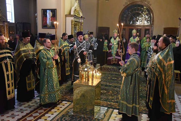 The Midnight Office was celebrated in the morning in Holy Dormition Cathedral, after which the final panikhida for Blessed Nun Ekaterina was served, as is tradition for newly-glorified saints.