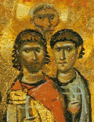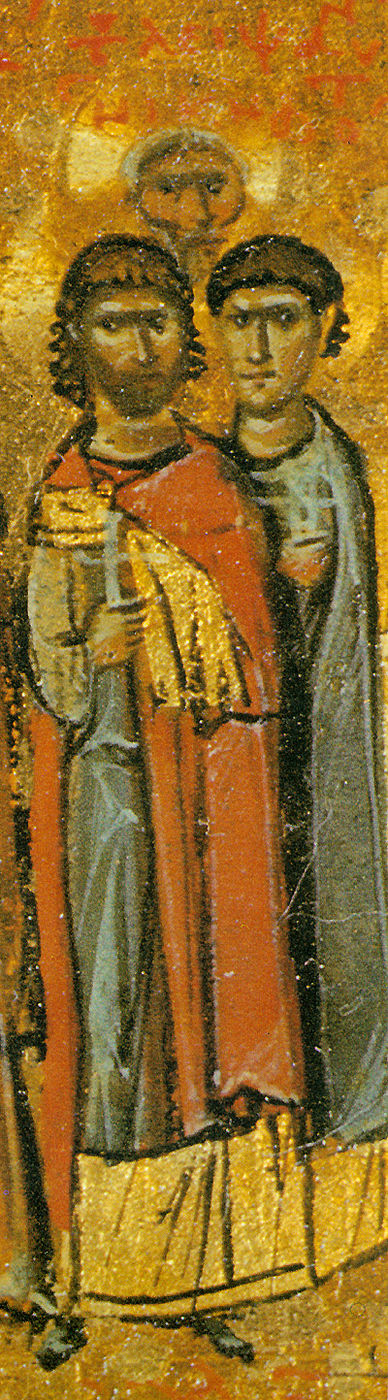In the morning, the guards found the saints cheerful and strong. Then Fortunianus ordered sorcerers and conjurers to carry snakes and all kinds of poisonous creatures into the prison. The guards looked into the cell through an opening in the ceiling and saw the martyrs unharmed, praying, and the snakes crawling at their feet. When the sorcerers opened the door of the prison cell, the snakes bit them. The furious Fortunianus gave orders to behead the holy martyrs. Christians took up their holy bodies and buried them with reverence outside the city.