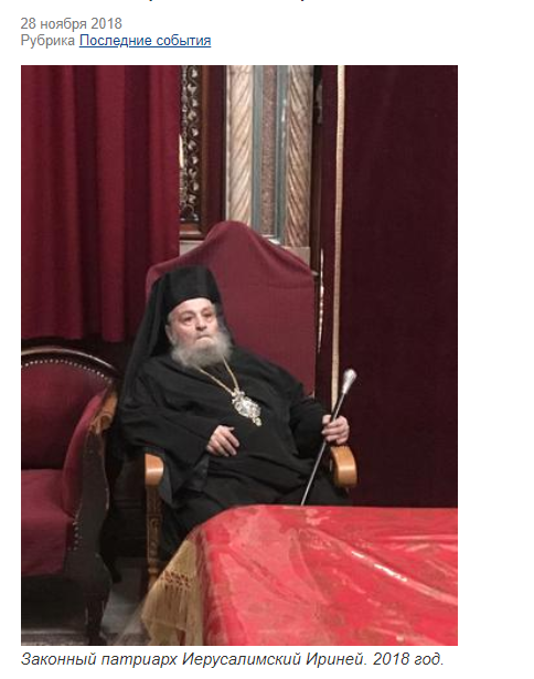 “The lawful Patriarch of Jerusalem, Irenaus. 2018.”