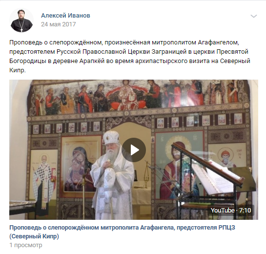 Ivanov’s social media post of Agafangel Pashkovsky’s sermon in North Cyprus