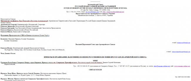 Of course, it’s much more complicated for Agafangel Pashkovsky to control the synod now that it’s in New York than when it was located in Odessa. It’s probably more complicated to go there for Agafangel, but for Herbst and the other officials it is obviously simpler (after all, they don’t have to appear in Ukraine and draw undue attention from the Ukrainian media with their visits). But the question arises: Is an insignificant schismatic really in control of a serious Washington official or is it the other way around? Herbst is the supervisor of this structure from the government and secret services angle, and has such strong influence that he was brought in as a member of the synod without even being a clergyman (he is the only member of the synod without clerical rank—all the rest, according to the list, are bishops).