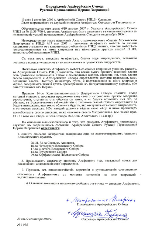 However, even as that document was being prepared there were a number of people in ROCOR who related extremely negatively to ROCOR’s rapprochement with the ROC. The leader of this opposition was considered to be Metropolitan Agafangel (Pashkovsky), who is located in Odessa. In the open source, Wikipedia [Russian language], we read about him: