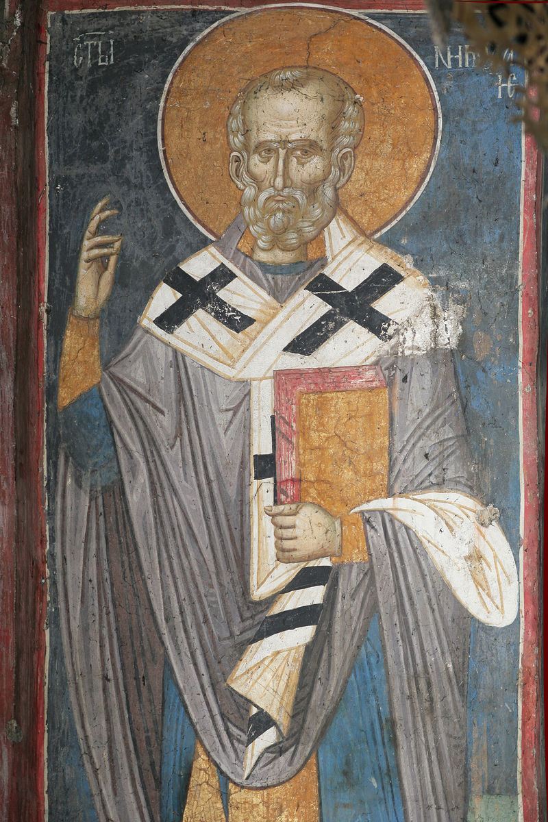 St. Nicholas the Wonderworker. A fourteenth-century fresco in the nave of the Holy Ascension Church at Visoki Decani Monastery, Kosovo, Serbia