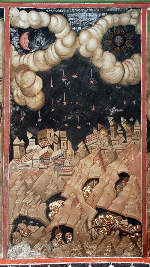 A scene from the Apocalypse. Dionysiou Monastery, Mt. Athos You, Christian listeners, heard the Gospel reading at the Liturgy yesterday. Do you remember what Christ said to His disciples as though incidentally: Then shall they deliver you up to be afflicted, and shall kill you: and ye shall be hated of all nations for My name's sake. And then shall many be offended, and shall betray one another, and shall hate one another (Mt. 24:9-10)?