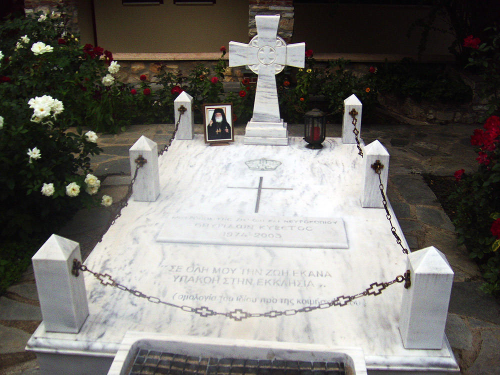 And His Eminence departed to the Lord in this monastery. His gravestone reads: “All my life I was in obedience to the Church.” These are his own words, which he said not long before his death. The dates 1973-2003 are also embossed on his tombstone, but they’re not the years of Metropolitan Spyridon’s life, but the years of his archpastoral ministry.
