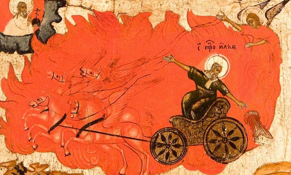 The great Prophet Elias was taken up to heaven in a fiery chariot (4 Kings 2:1–18). According to the Old Testament Prophecy, he will return to the earth before the coming of the Messiah Christ: Behold, I will send you Elijah the prophet before the coming of the great and dreadful day of the LORD (Mal. 4:5). This will happen at the Second Coming of the Savior. According to St. Andrew of Cesarea, the two witnesses spoken of in the Book of Revelations will be righteous Enoch and Elias: And I will give power unto my two witnesses, and they shall prophesy a thousand two hundred and threescore days, clothed in sackcloth. These are the two olive trees, and the two candlesticks standing before the God of the earth. And if any man will hurt them, fire proceedeth out of their mouth, and devoureth their enemies: and if any man will hurt them, he must in this manner be killed. These have power to shut heaven, that it rain not in the days of their prophecy: and have power over waters to turn them to blood, and to smite the earth with all plagues, as often as they will (Rev. 11:3-6). The Jewish contemporaries of the Savior awaited the coming of Elias during their time (Mt. 16:14,17,10; Jn. 1:21). The Lord explained the true meaning of this prophecy of Malachi, saying that it relates to St. John the Forerunner: And his disciples asked him, saying, Why then say the scribes that Elias must first come? And Jesus answered and said unto them, Elias truly shall first come, and restore all things. But I say unto you, That Elias is come already, and they knew him not, but have done unto him whatsoever they listed. Likewise shall also the Son of man suffer of them. Then the disciples understood that he spake unto them of John the Baptist (Mt. 17:10).