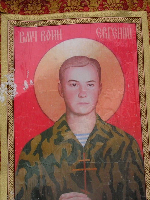 Aleksandr Makeyev, a paratroop officer who heads a foundation to assist soldiers, said he had seen soldiers kneeling in prayer before an image of Evgeny. “The kids in Chechnya feel they’ve been abandoned by the state and abandoned by their commanders,” he told the newspaper Moskovsky Komsomolets. “They don’t know who to appeal to for help, but they understand that Zhenya is one of them,” he said, using Evgeny’s nickname. “You can say he is the first soldier-saint.”