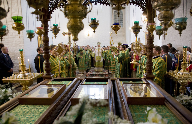 Patriarchal Service at the relics of Saints Zosima, Sabbatius, and Herman of Solovki.