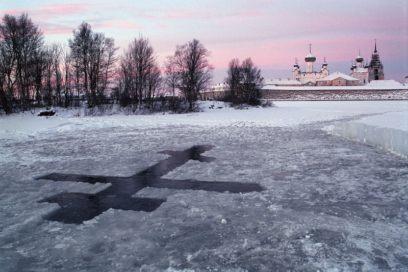 Cross procession with a blessing of the waters on the feast of Theophany.