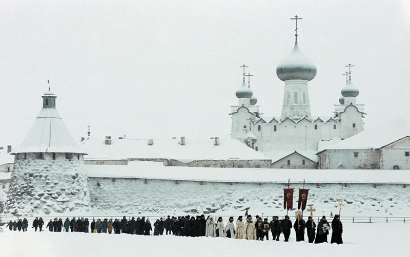 In honor of these three saints of Solovki whom we celebrate today, we are revisiting selections from an amazing photo exhibit displayed in November of 2010 in the Christ the Savior Cathedral: "Solovki: Golgotha and Resurrection", dedicated to the twentieth anniversary of the renewal of monastic life at Solovki. The exhibition showed the history of Solovki Monastery from its height spanning the sixteenth through nineteenth centuries to the time of its discretion in the twentieth century, when it was turned into a concentration camp.
