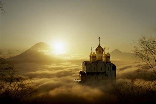 The Holy Trinity Cathedral is located on one of the highest points in the city, from which the panorama of the stunning natural beauty of Kamchatka can be seen: snow-topped volcanoes and hills, with the wide ocean between them.