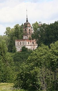 The small Monastery of Savior of St. Sergius of the Nurma existed for several centuries, then fell victim to the 1764 church reforms. It is no more. However, the church erected in its place is a reminder of the spiritual light disseminated throughout Russia by the disciples of the Abbot of the land of Russia. St. Sergius of Radonezh. Traditional in form, with later imperfect annexes, the church nevertheless has its grace and gives one a feeling of a flight. A massive two-storey building has practically no exterior decoration and looks almost stern, as becomes a monastery. However, the architectural form of the upper part of the building adds to it a light and pure tone. Fragile in appearance, the little domes carry big, open-work crosses. A graceful steeple rises high into the sky.