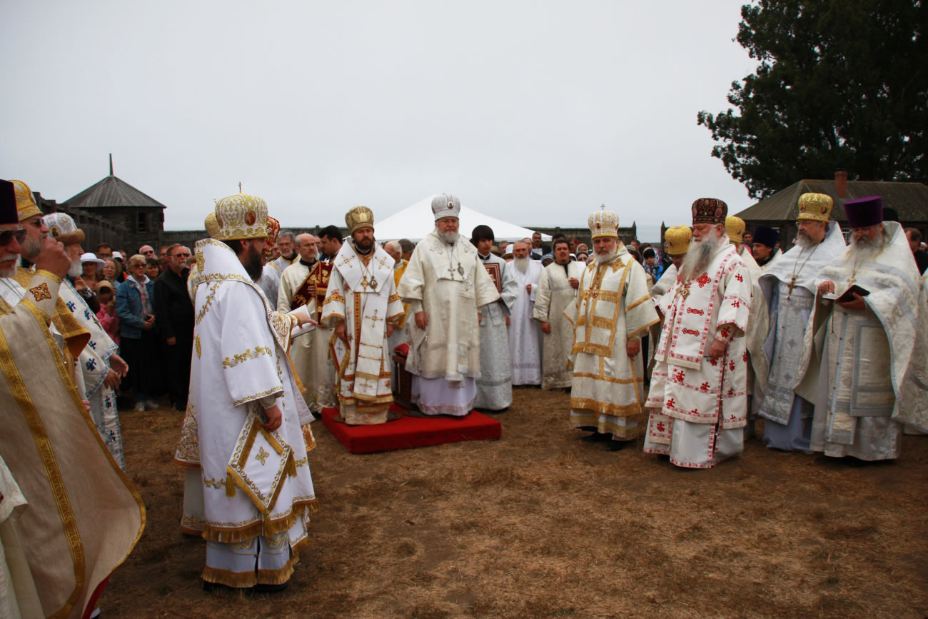 First of all I would like to pass on the blessing of His Holiness Patriarch Kirill of Moscow and All Russia, by whose blessing I am visiting North America in order to celebrate Divine Liturgy together with Metropolitan Hilarion and a host of hierarchs here at Fort Ross to mark the 200th anniversary of its establishment as the first outpost of Russia on the American land.