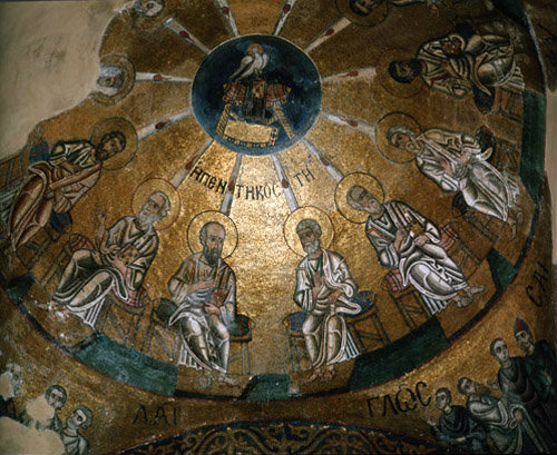 | The Pentecost Mosaic in the dome of The Church in the Monastery of Hosios Loukas Greece 11th century. Photo: soniahalliday.com |