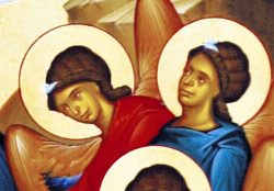 3. Angels of the Lord gathered on the shore of the Jordan River give praises to Christ (detail).