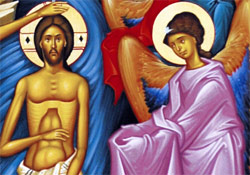 4. An angel of the Lord receives Christ as He comes out of the water (detail).
