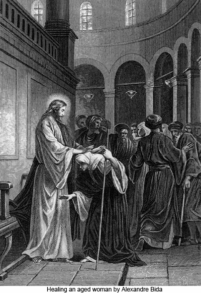 That sick woman who found her way into the synagogue that Sabbath (Saturday, the Hebrew day of rest) is a good example for each of us. Following her good and pious example, we should come to church each Sunday, for prayer and the preaching of God's Word (the sermon). It was for these two reasons that this woman went to the synagogue—this poor creature who was so bent over in pain that she could not straighten herself even to walk. She came to find consolation—the strength to bear her pains and her afflictions—and she found much more than she was expecting to receive. She was completely healed of the illness that had troubled her for eighteen years. Picture her, listen with repentance to the sermon of the Lord Jesus Christ. Sitting in some obscure corner of the synagogue, she was asking the mercy of God, and God prepared her to accept the Divine Grace. When, at the close of the sermon, she approached our Lord, He beheld not only her bowed body, but her soul bowed in deep repentance. He spoke to her: "Woman, you are free from your sickness." Then, in order that the Divine, lifegiving power might be transferred, He touched her with His holy hands. And because the words of God are in themselves Divine acts, the woman was instantly healed. Behold, dear Christians, how the love of God is manifested and poured out to men. No obstacle can come between God and the man who is asking His help. Not even the Sabbath. For the Law, the Commandments, and even the Sabbath, were created for man, and not man for them. Indeed, God's very laws and commandments are embodiments of His Divine Love for men. The same should be true of human laws, which must be for man's own good, not for his enslavement—otherwise they become unrighteous and inhuman. Laws are made for evil people, in order to prevent them from performing their deeds of darkness. Good people, righteous people, need no laws. "It must be remembered, of course, that laws are made, not for good people, but for lawbreakers and criminals, for the godless and sinful, for those who are not religious or spiritual, for men who kill their fathers or mothers, for murderers, for the immoral, for sexual perverts … for those … who do anything else contrary to the true teaching" (I Tim. 1:9-10). For Good men, that is, for Christians, there exists but one law, the Law of Love. This Law is positive in its nature; it not only forbids the bad, it encourages positive acts of goodness. Nothing can resist this Law. Yet there is much that would keep us from the good. First and foremost is hypocrisy. What is hypocrisy? Hypocrisy is the sin of pretending to be upright and good, while inside we are rotten and sinful. In other words, hypocrisy is giving others the impression that we are something which, in reality, we are not. Hypocrites pretend to be concerned about the Law and the Commandments, but only so that they might frustrate the good. They would appear to men as guardians of the Divine Law, and those who fight for the preservation of human law, while in reality they wish only to uproot, burn, and destroy the very foundations of society. The hypocrite does not care if men lose their lives, if injustice appears as truth, if innocent people are crucified, if venerable institutions are demolished, and the fact that the Devil is dancing as he beholds all this only delights the hypocrite.