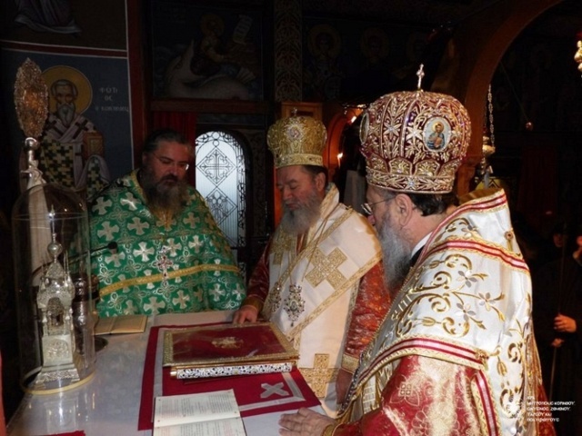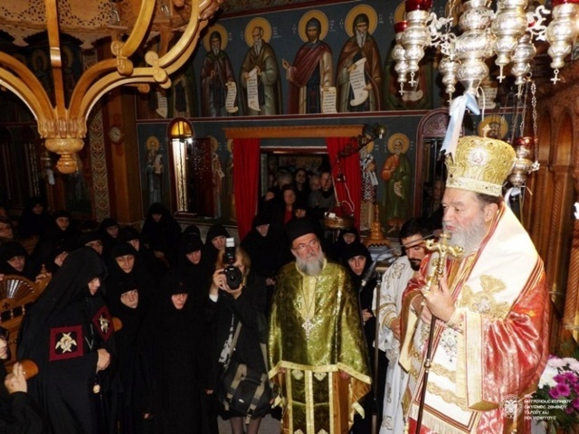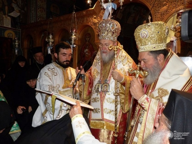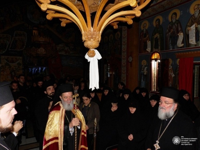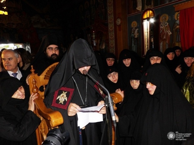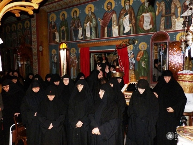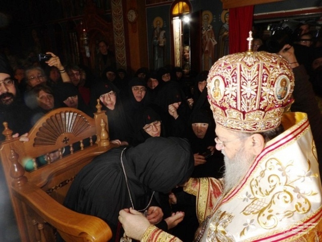 The Enthronement of Abbess Chrysovalanti took place on December 8, 2014, in St. Patapios Nunnery at the area of Corinth, Greece. Before the Enthronement, the Divine Liturgy was co-celebrated by Metropolitans Dionysios of Corinth and Chrysostom of Chalkida. Hundreds of pilgrims gathered to pray for the new Abbess of the popular Convent of St. Patapios the miraculous.