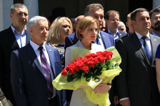 Head of the Yalta administration Andrei Rostenko (on the left) was at the event together with N. Poklonskaya as well – the photograph is provided by the Livadia Palace administration.