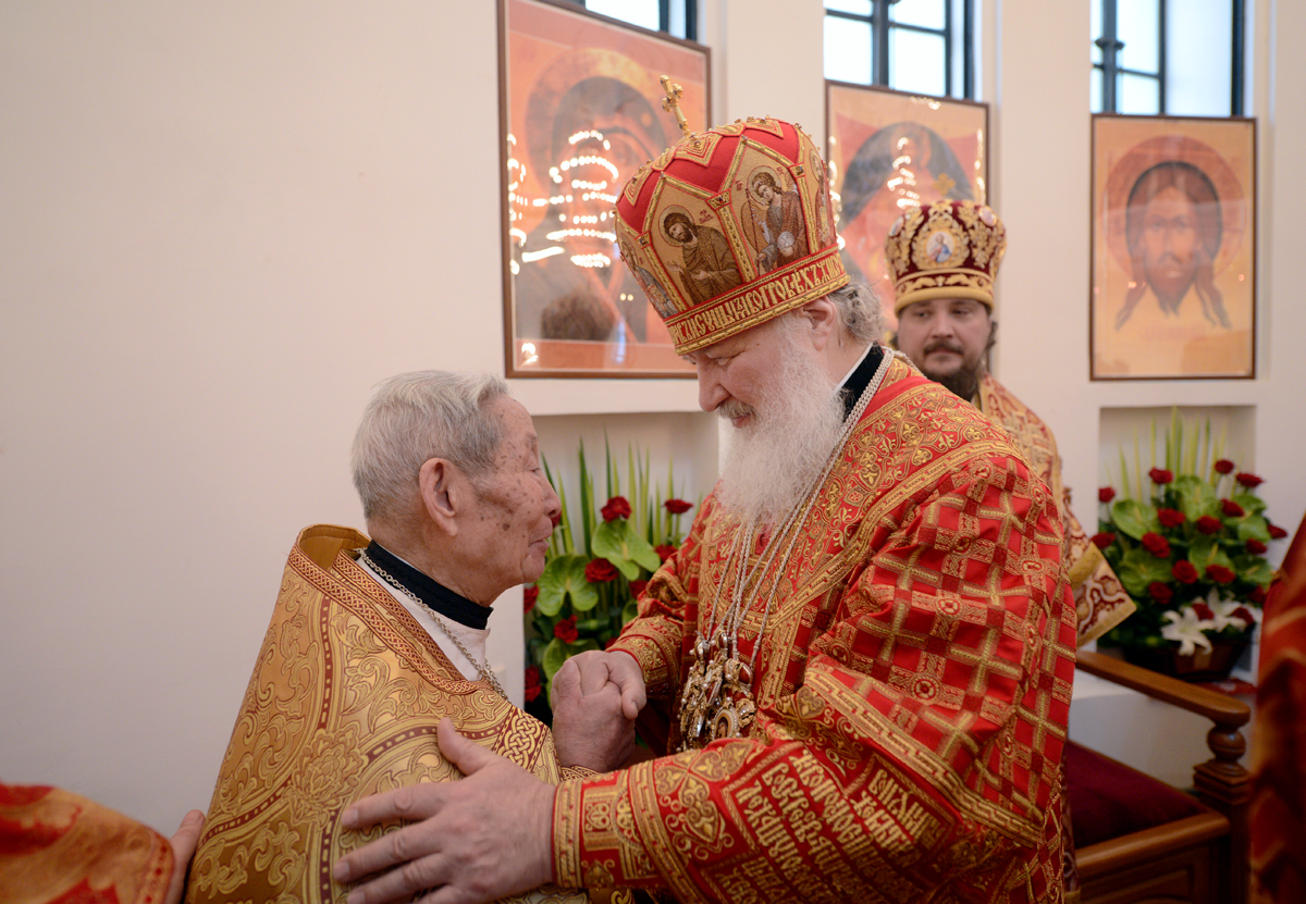 In May 2013, Fr. Michael Wang concelebrated with His Holiness Patriarch Kirill during the first visit of primate of the Russian Orthodox Church to China. The Divine Liturgy on that day was celebrated in Shanghai, at the Cathedral of the “Intercessor for Sinners” icon of the Most Holy Theotokos.