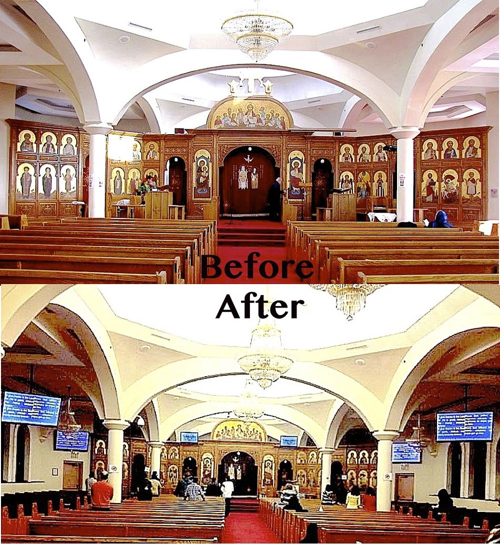 The evil one is responsible for the projector screens in any Orthodox Church. It really is just as simple as that. Satan is working harder than ever to destroy the Church of Christ.