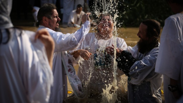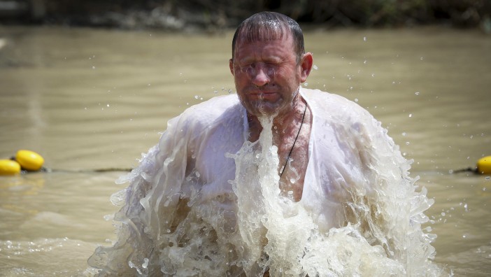 Orthodox Christian pilgrims take a dip in the Jordan river as part of a traditional Epiphany baptism ceremony at the site of Qasr al Yahud on January 18, 2015. (Hadas Parush/Flash90) Sa’ar Kfir, who has been the director of the Qasr al Yahud site since 2000, insists that the water is sufficiently clean for baptisms.