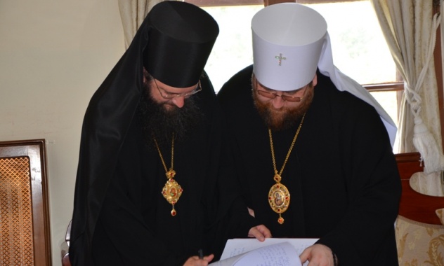 Metropolitan Ignaty and Bishop Clement informed the Holy Epistasia members about the situation of the Orthodox Church in Russia and Ukraine and answered their questions. Discussing the situation in Ukraine, Metropolitan Ignaty said that the whole Russian Orthodox Church prayed for peace and termination of bloodshed in Ukraine. Speaking on behalf of the Holy Community, Father Paul said that prayers for the restoration of peace in Ukraine are lifted up in all the monasteries on Holy Mountain.