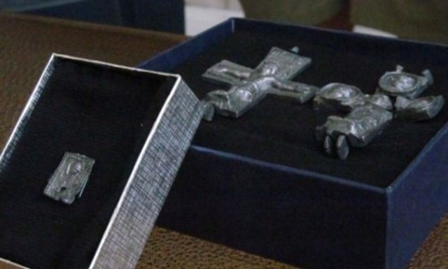 Another view of the 14th century lead cross reliquary and 10th-11th century lead icon of Virgin Mary found in the medieval Bulgarian city of Missionis / Krum’s Fortress near the city of Targovishte. Photo: Forte Radio Another view of the 14th century lead cross reliquary and 10th-11th century lead icon of Virgin Mary found in the medieval Bulgarian city of Missionis / Krum’s Fortress near the city of Targovishte. Photo: Forte Radio