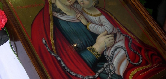Every year since then, snakes have mysteriously appeared during the days of early August, venerating the icons there, leaving after the feast itself.