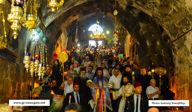 There, the icon was placed on an Epitaph to the south of the Tomb of Theotokos, where a supplication was made, followed by a Divine Liturgy attended by hundreds of pilgrims and locals asking for the mediation of Theotokos.