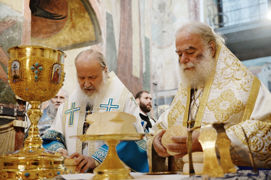 On 28th August 2015, His Beatitude Theodoros II, Pope and Patriarch of Alexandria and All Africa, who is in Moscow on the final leg of his pilgrimage to Russia, concelebrated with the Most Holy Patriarch Kirill of Moscow at the Patriarchal Cathedral of the Dormition of the Theotokos in the Kremlin, on the occasion of the great feast of the Dormition of the Theotookos according to the Old Calendar.