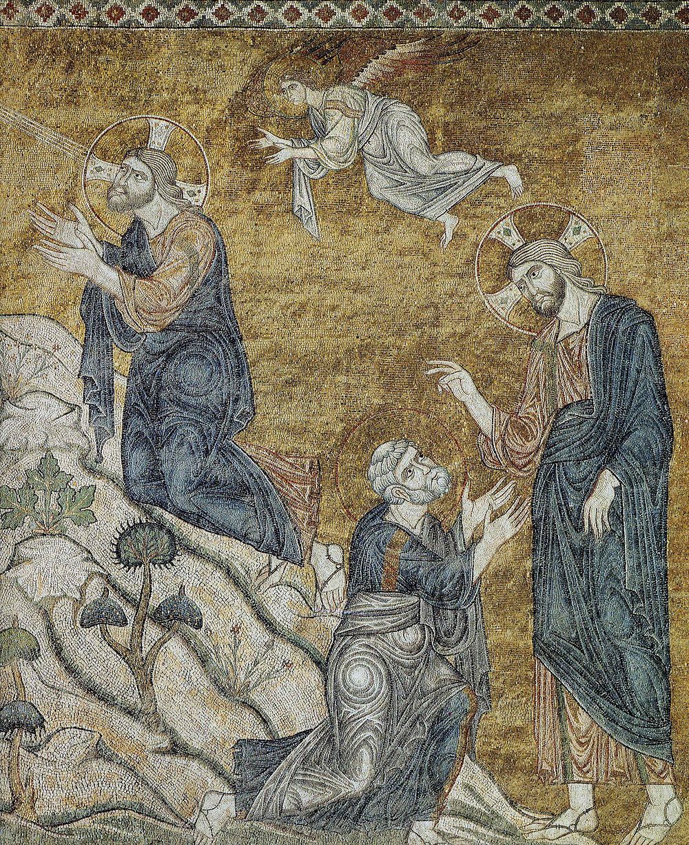 Agony in the Garden, a fragment of a fresco. Visoki Dečani (High Dečani), Serbia, Kosovo. XIV century. In the Gospel according to St. Matthew (6:5-14), our Lord Jesus Christ teaches us about prayer: both how to pray and what we should seek in prayer. What is most wondrous is that Jesus, even though He is God, prays for us in the Gospels. One really has to think about this mystery. God becomes incarnate to save humanity, then as a human, He prays to His Father for all of us. God becomes human in order to be able to pray for us! His prayer for us, as our High Priest, is in part how Christ saves us. His prayer for us is essential for our salvation, and He can only pray for us as the incarnate Messiah. This is the love of Christ for all humanity.